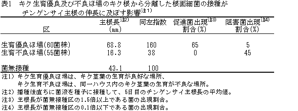 情報名 根面細菌のチンゲンサイ根の伸長・阻害効果による土壌微生物特性の評価