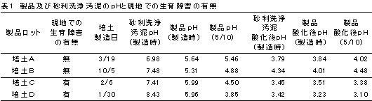 - 砂利洗浄汚泥は砂利採取地によりその性質が異なり、今回障害の発生した培土は河口付近で採取された砂利の洗浄汚泥で、このような地域からの採取砂利の洗浄汚泥については硫黄含量が高いと考えられるため特に注意が必要である。