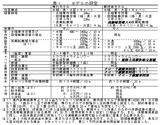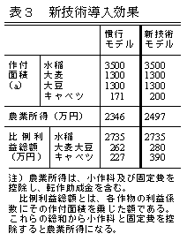 北陸秋どりキャベツ作の大規模水田作経営への新技術導入効果