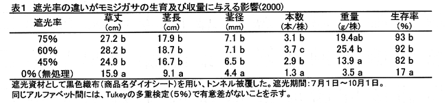| [キーワード] | モミジガサ、ウド、遮光、混植 |