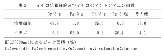 | 発表論文等 | :1)浅野ら、「イチゴ培養細胞を用いたアントシアニンの製造方法」、特願2000-99688号 2)浅野ら (2000) 日本植物細胞分子生物学会講演要旨:48 |