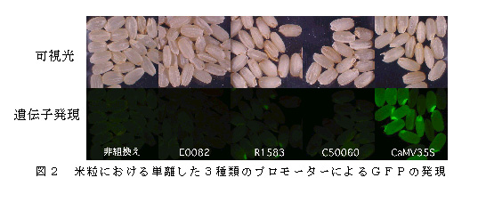 イネゲノム解析データを基に、組織特異的な発現パターンを示すcDNAクローンを選定し、それらのプロモーター領域をイネゲノムより単離した。単離したプロモーター領域は想定した組織特異的発現パターンを有している。