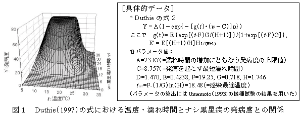 [キーワード]ナシ、ナシ黒星病、発病予測モデル、Duthieの式、温度、濡れ時間、インターネット |