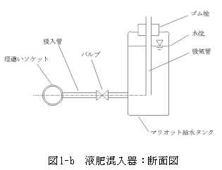 [キーワード]液肥混入器、ベンチュリ管、マリオット給水タンク |