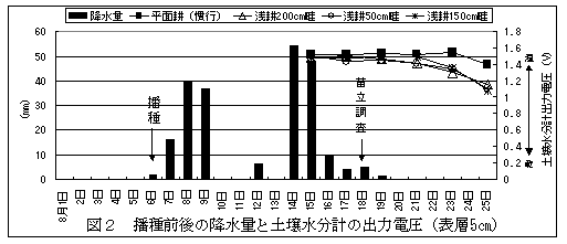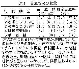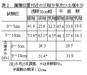 大豆浅耕小畦立播種機の播種後降雨に対する苗立ち安定効果 |