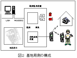 フィールドサーバ(圃場内無線LANシステム)を活用してトラクタ等の乗用農機の転倒事故やオペレータの不調等の作業中の緊急事態を通報する装置。ネットワークカメラの画像による状況確認とGPSによる位置の特定も基地局側で行うことができる。 |