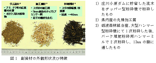 [キーワード]家畜ふん尿、堆肥化副資材、林地残材、加工廃材、ダム流木、生育阻害 |