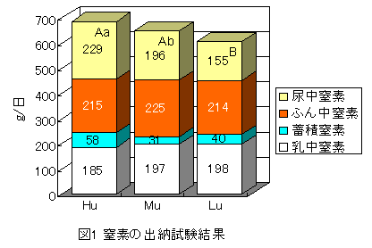 家畜排せつ物の管理の適正化と利用の促進などを目的とした農業環境関連3法の本格実施を目前にして環境保全型農業の促進が求められており、家畜ふん尿の処理・利用技術についての研究は多い。しかし、飼料給与方法が家畜排せつ物の量や成分に及ぼす影響を検討した例は少ない。そこで環境負荷物質である窒素排せつ量の低減と生乳の高位生産の両立を目的として、粗蛋白質含量およびルーメン非分解性蛋白質含量の異なる飼料の給与が乳生産、ふん尿排せつ量および窒素出納にどの様な影響を及ぼすかについて検討する。 |