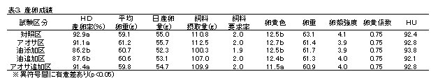 アオサ添加飼料を給与した採卵鶏の産卵成績および孵化成績 |