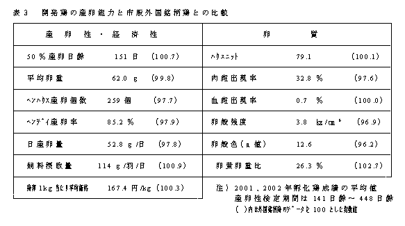 研究課題名:赤玉卵用種鶏の基礎系統の作出、組合せ検定試験 |