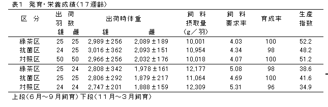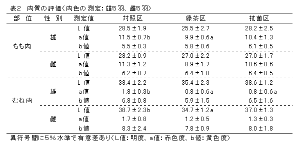 駿河若シャモの無投薬飼育における緑茶抽出物添加による効果 |