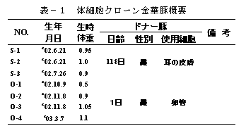 研究課題名:豚クローン技術の確立と利用に関する研究 |