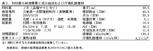 付着乳酸菌事前発酵液の稲発酵粗飼料への添加効果 |