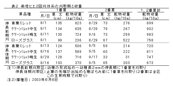 転作田に適する飼料用栽培ヒエの品種と刈取ステージ |