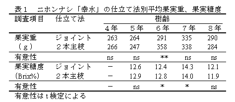 [キーワード]ニホンナシ、仕立て、早期多収、接ぎ木 |