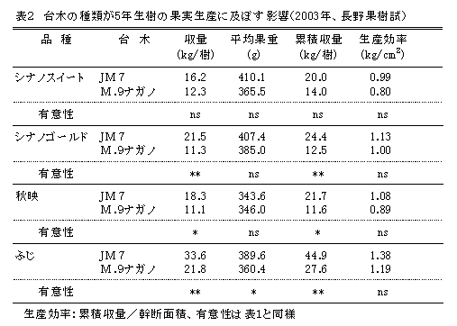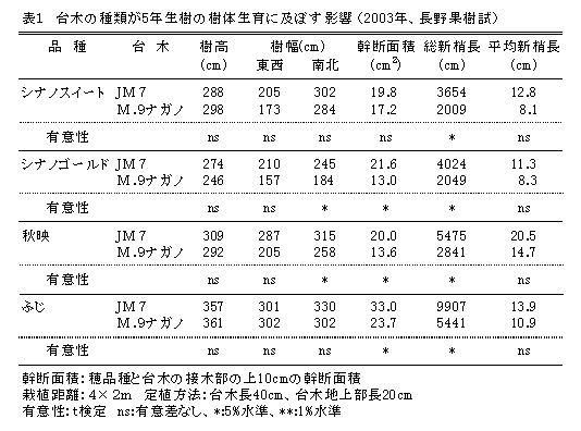 [キーワード]JM7、シナノスイート、シナノゴールド、小型化、わい化栽培 |