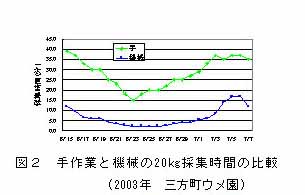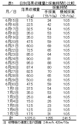 平坦園での落果集果機等を用いた完熟ウメの効率的収穫法 |