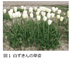 チューリップ品種の中で、晩生品種のカラーバリエーションが少ないことから、花色が白系で、茎葉が強健な花壇用品種の育成を目標とした。 |