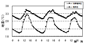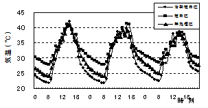 | 図2 処理による気温と地温の変化 ( 地温:深さ5cm、2002.8.5~7測定) | |