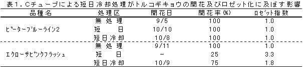 [キーワード]トルコギキョウ、コンダクションチューブ、冷却処理、短日処理、品質向上 |