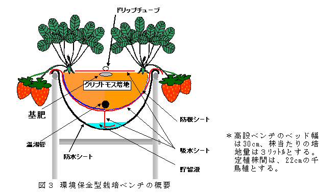 クリプトモス培地を用いたイチゴの全量基肥高設ベンチ栽培 |
