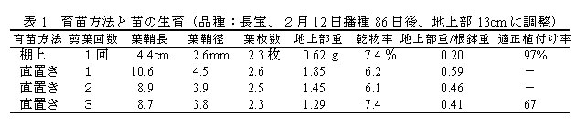 ネギ平床二条穴開け移植機に適したセル成型苗の育苗管理 |