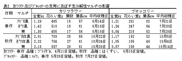 [キーワード]キャベツ、ブロッコリー、カリフラワー、生分解性フィルム、マルチ栽培 |