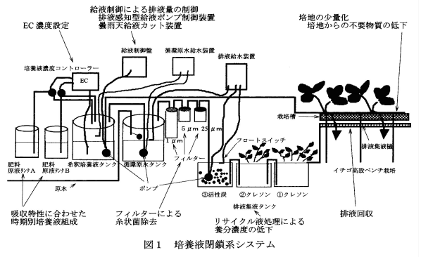 イチゴ高設ベンチ栽培「岐阜県方式」の培養液閉鎖系システム |