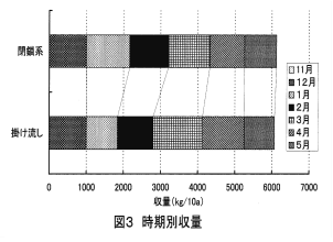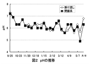 作業性の向上を目的として開発した、掛け流し栽培によるイチゴ高設ベンチ栽培「岐阜県方式」(以下、(掛け流し)という)は、環境負荷低減のため、給液制御装置を導入している。さらに環境負荷低減を図るため、培養液を循環させて閉鎖系システム(以下、(閉鎖系)という)を開発する。 |