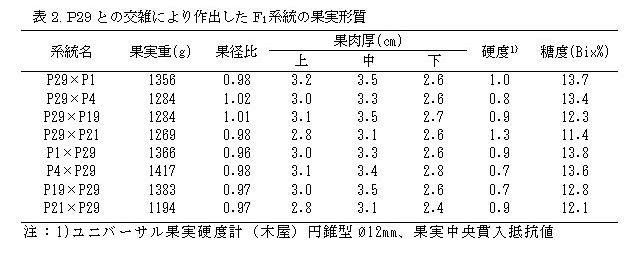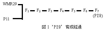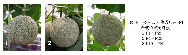 うどんこ病罹病性の優良アールス系母本と抵抗性母本WMR29を交雑して、うどんこ病抵抗性系統を選抜し、自殖により育成した母本が‘P29’である。 |