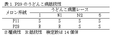 メロンうどんこ病菌レース1およびN1抵抗性母本‘P29’の育成 |