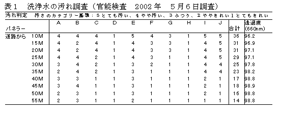 目視観察で汚れを判定しにくい茶生葉の調査方法3種類(タイルから、洗浄水から、生葉ふき取り)を検討した結果、洗浄水からの汚れを判定する方法が最適であり、分光光度計(660nm)の透過度で測定できる。 |