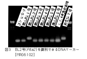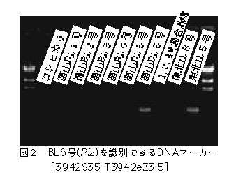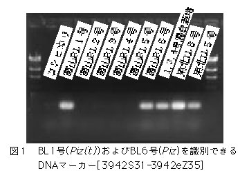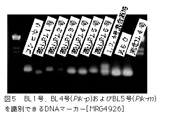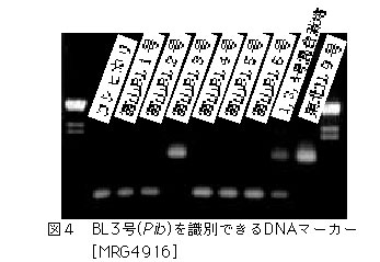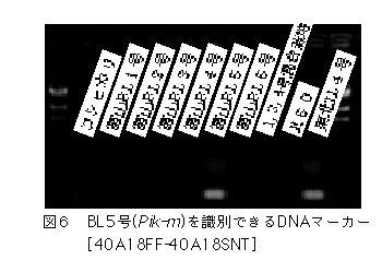 いもち病抵抗性を備えた富山県育成の「コシヒカリ富山BL1号~6号」について、いもち病抵抗性遺伝子の近傍にあるDNAマーカーを利用することで正確かつ短時間で品種を識別することが可能である。 |