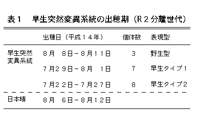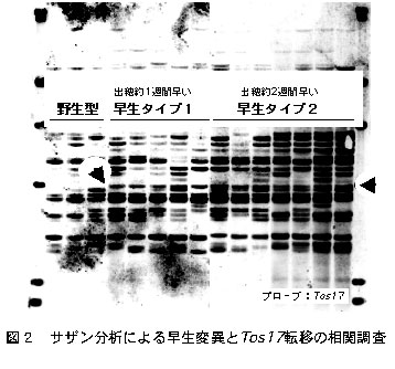 イネレトロトランスポゾンTos17の転移により生じた早生突然変異体 |