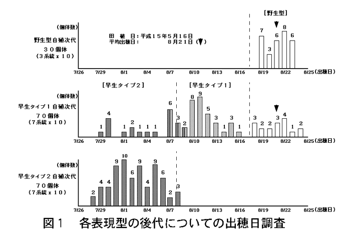 「日本晴ミュータントパネル」の表現型調査で見出した早生突然変異体「NE0796」は、レトロトランスポゾンTos17の転移により遺伝子が機能を失って変異が引き起こされている。変異ヘテロ型では出穂が約1週間~10日早くなり、変異ホモ型では約2週間~20日早くなる。 |