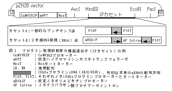 遺伝子組換えにより、種子の貯蔵タンパク質であるプロラミンの含有量が著しく減少したイネが作出できる。この種子では、プロラミン以外の貯蔵タンパク質の含有量は原品種とほぼ同等であり、総貯蔵タンパク質含有量は低減する。 |