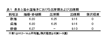自給飼料生産向上のため、県内の稲麦二毛作地帯では新たな自給飼料または水田転作作物として飼料イネ生産が年々増加している。しかし、6月の麦収穫、水稲移植の作業集中・競合から省力的栽培法の導入が求められている。 |