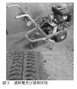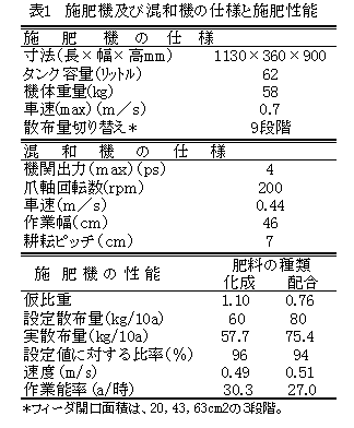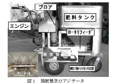 施肥機は、ロータリフィーダ方式の繰り出し機構で車速と連動し、ブロアの送風によりうね間および樹冠下にも施肥できる。さらに、樹冠下土壌と混和するための混和機を使用することで肥効の安定が期待できる。 |