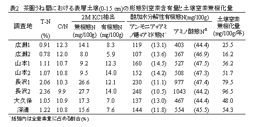 黒ボク土茶園のうね間部表層土壌における土壌窒素無機化量の迅速な評価法 |