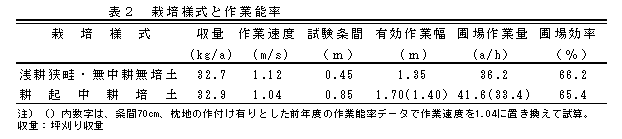 浅耕狭畦・無中耕無培土栽培による大豆の収穫作業改善効果 |