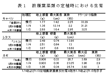 ロングマット苗水耕装置の野菜育苗への利用 |