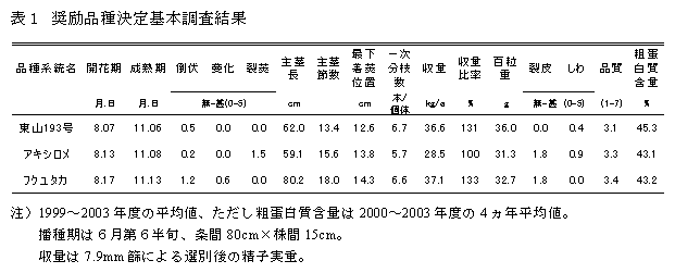 ダイズ「東山193号」の奨励品種採用 |