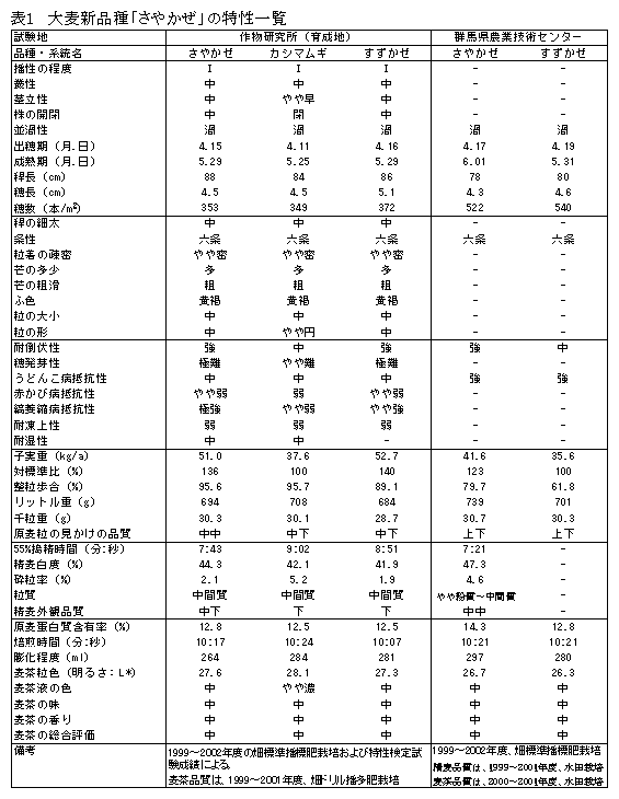 倒伏に強くオオムギ縞萎縮病抵抗性の大麦新品種「さやかぜ」 |