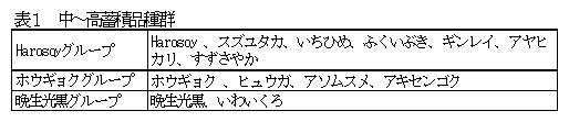 国内主要品種・系統は子実中へのカドミウム蓄積濃度から、低蓄積グループ、中~高蓄積グループに分類される。中~高蓄積グループは育成の系譜から遺伝的に近縁な3つのグループに分けられる。 |