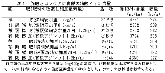 研究課題名:農産物の硝酸態窒素低減化技術の開発 |