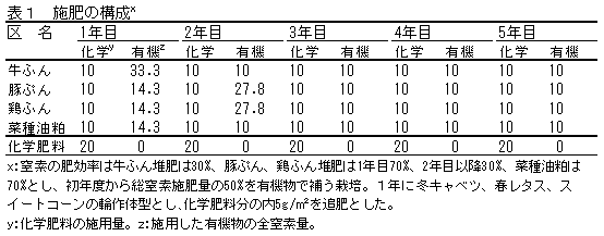 [キーワード]牛ふん堆肥、豚ぷん堆肥、菜種油粕、堆肥の連用、窒素の年間分解率 |