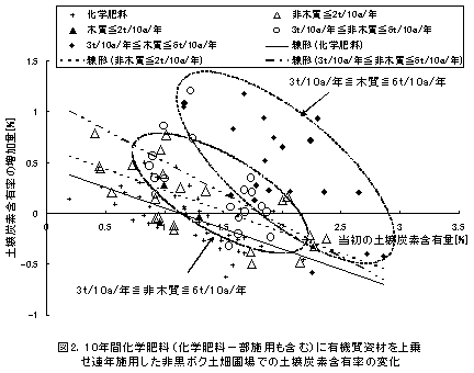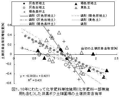 非黒ボク土の長期連用畑圃場での土壌炭素含有率の増減要因 |