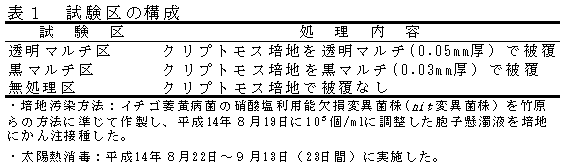 クリプトモス養液栽培培地の太陽熱消毒によるイチゴ萎黄病防除 |