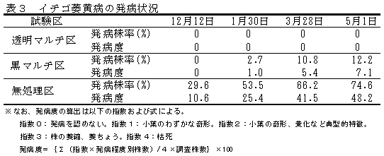 [キーワード]太陽熱消毒、イチゴ萎黄病、養液栽培、透明マルチ |