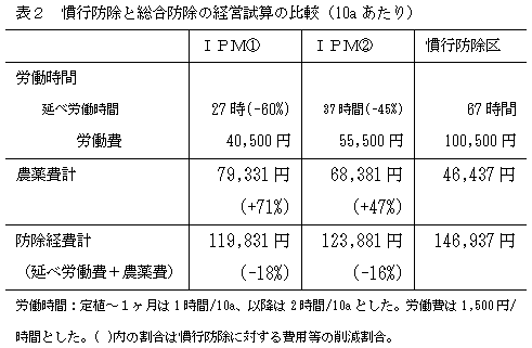 長期抑制ミニトマト栽培のマメハモグリバエとコナジラミ類に対して、天敵寄生蜂およびピリプロキシフェンテープ剤と他の害虫防除法を組み合わせたIPM体系は、有効性と経済性が慣行防除に勝る。 |